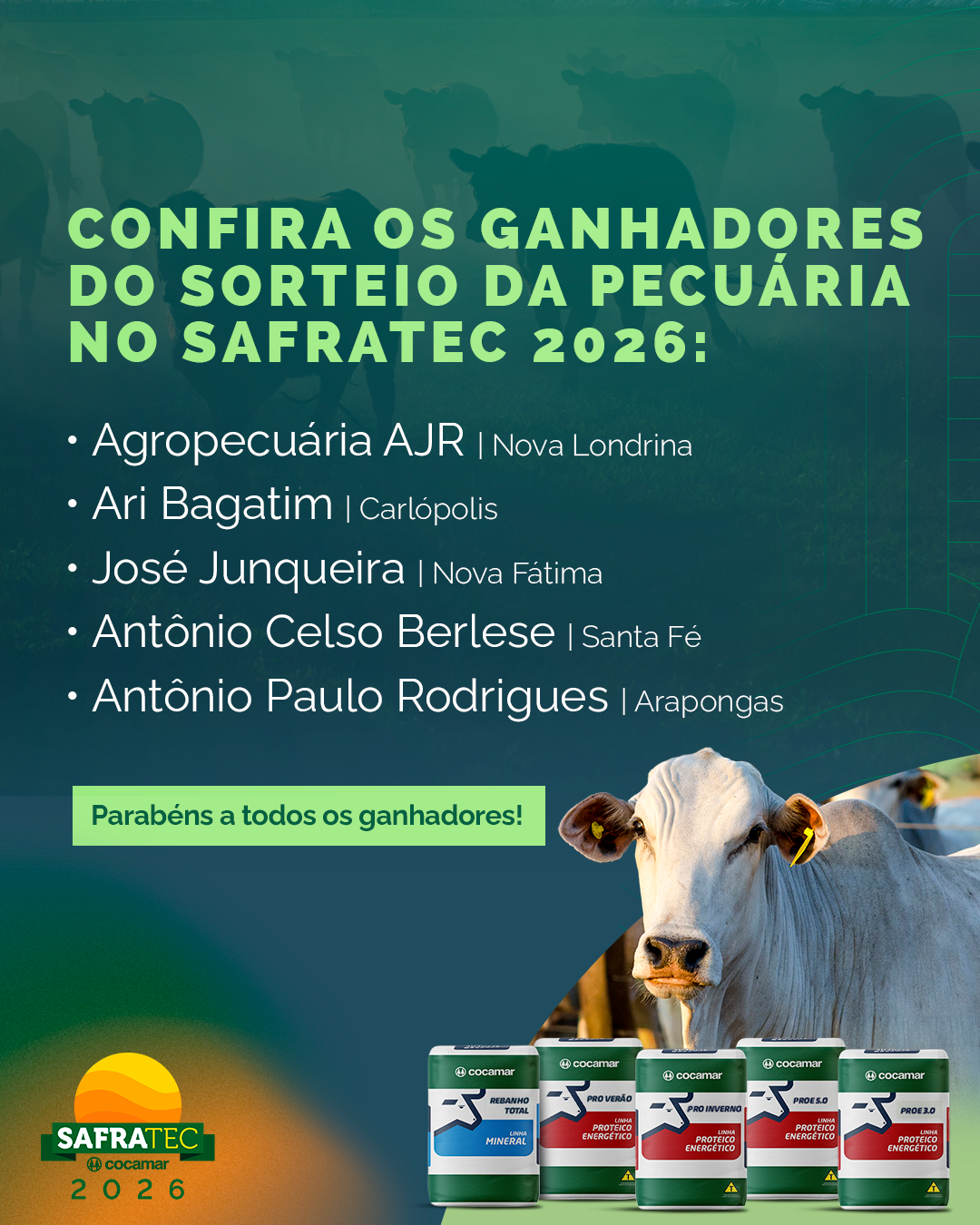 Ganhadores do Sorteio da Pecuária no Safratec 2026